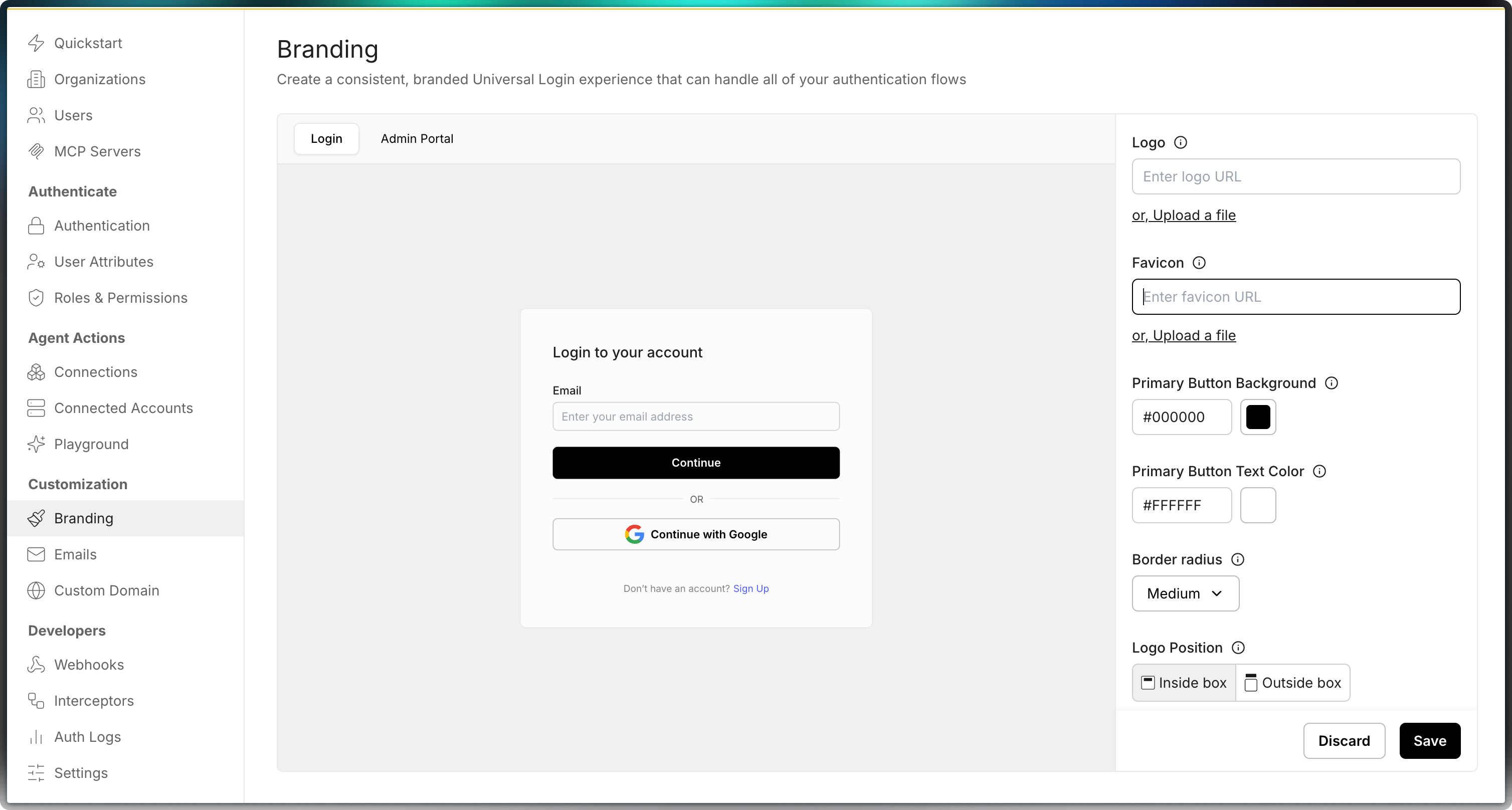 Logo PositionChoose where your logo appearsInside or outside the login box
